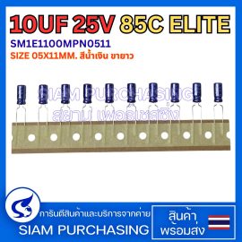 (จำนวน 10 ชิ้น) 10UF 25V 85C ELITE SIZE 05X11MM. สีน้ำเงิน ขายาว TAPPING คาปาซิเตอร์ Capacitor (สินค้าในไทย ส่งเร็วทันใจ)