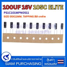 (จำนวน 10 ชิ้น) 100UF 16V 105C ELITE SIZE 05X11MM. TAPPING สีดำ ขาห่าง คาปาซิเตอร์ Capacitor (สินค้าในไทย ส่งเร็วทันใจ)