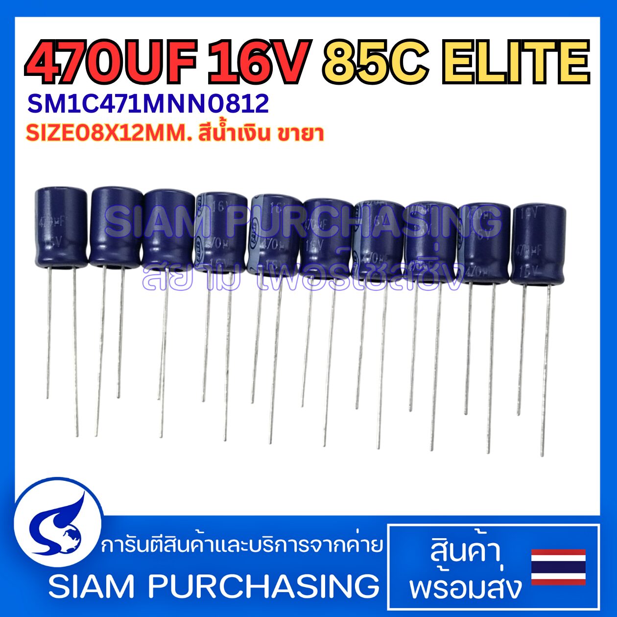 (จำนวน 10 ชิ้น) 470UF 16V 85C ELITE SIZE08X12MM. สีน้ำเงิน ขายาว คาปาซิเตอร์ Capacitor (สินค้าในไทย ส่งเร็วทันใจ)