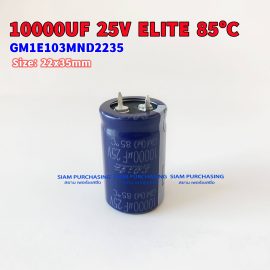คาปาซิเตอร์ GM1E103MND2235 10000UF 25V 85C ELITE SIZE 22X35MM. สีน้ำเงิน ขาเขี้ยว