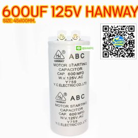 สตาร์ท คาปาซิเตอร์ STARTING CAPACITOR 600UF 125V.AC HANWAY SIZE 45X100MM.