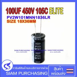คาปาซิเตอร์ PV2W101MNN1836LR 100UF 450V 105C ELITE SIZE 18X36MM. สีดำ