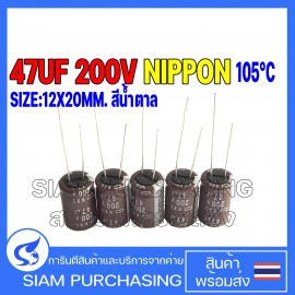 (จำนวน 5ชิ้น) CAPACITOR คาปาซิเตอร์ 47UF 200V 105C NIPPON SIZE 12X20MM. สีน้ำตาล