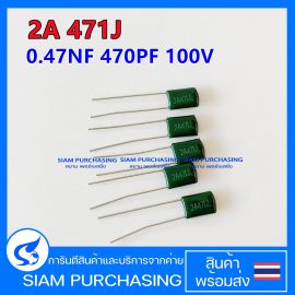 (จำนวน 5ชิ้น) MYLAR FILM CAPACITOR ฟิล์ม คาปาซิเตอร์ 2A 471J สีเขียว 0.47NF 470PF 100V