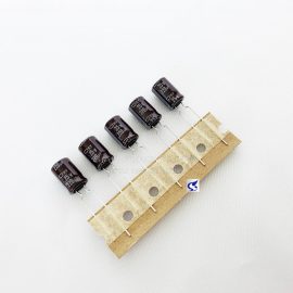 (จำนวน 5ชิ้น) คาปาซิเตอร์ 220UF 25V NIPPON 105C SIZE 8X11.5MM. TAPPING สีน้ำตาล ขาห่าง