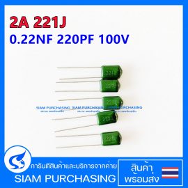 (จำนวน 5ชิ้น) ฟิล์ม คาปาซิเตอร์ 2A 221J 0.22NF 220PF 100V สีเขียว