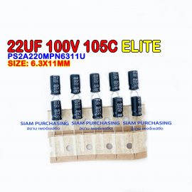 (จำนวน 10ชิ้น) CAPACITOR คาปาซิเตอร์ PS2A220MPN6311U 22UF 100V 105C ELITE SIZE 6.3X11MM. TAPPNG สีดำ