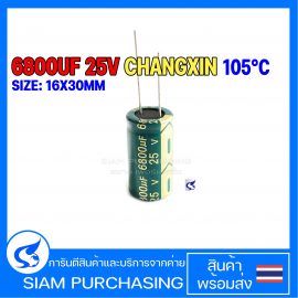 Capacitor คาปาซิเตอร์ 6800UF 25V 105C CHANGXIN SIZE 16X30MM. สีเขียว LOWESR