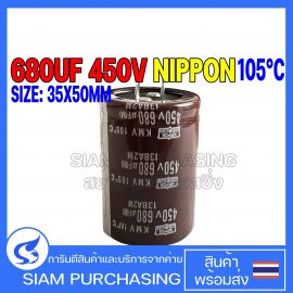 CAPACITOR คาปาซิเตอร์ 680UF 450V 105C NIPPON SIZE 35X50MM. สีน้ำตาล ขาเขี้ยว