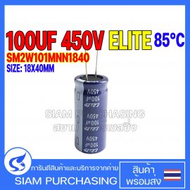 CAPACITOR คาปาซิเตอร์ SM2W101MNN1840 100UF 450V 85C ELITE SIZE 18X40MM. สีน้ำเงิน