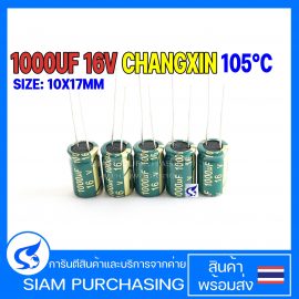 (จำนวน 5 ชิ้น) Capacitor คาปาซิเตอร์ 1000UF 16V 105C CHANGXIN SIZE 10X17MM. สีเขียว