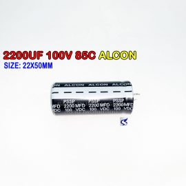 คาปาซิเตอร์ 2200UF 100V 85C ALCON SIZE 22X50MM. ขาเขี้ยว สีดำ